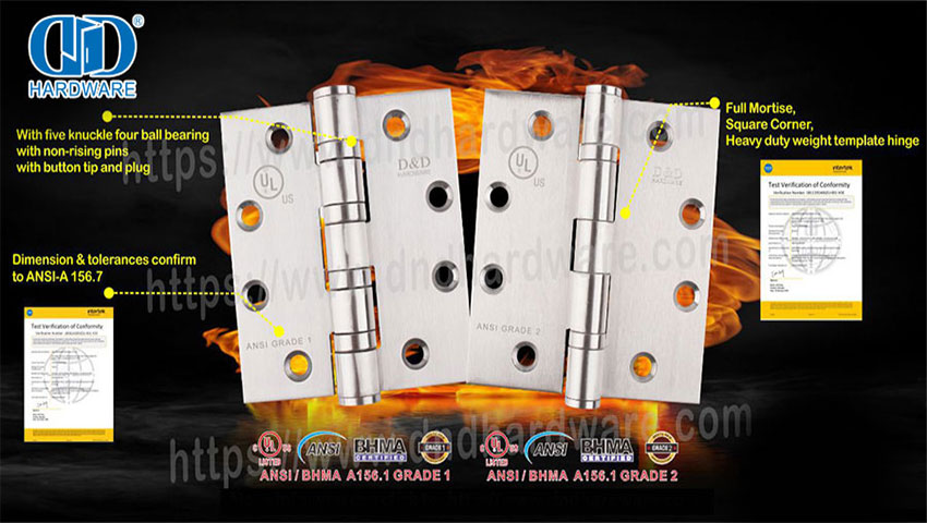 D&D Hardware, ein Anbieter professioneller Türbeschläge, bietet Händlern und Herstellern erstklassige Beschlagprodukte, die für ihre hohe Qualität und Langlebigkeit bekannt sind. Unsere Produktpalette wie Türschlösser, Türscharniere, Paniktürstangen, Türzylinder, Türgriffe, Türschließer usw. hat die ANSI/UL- und CE EN-Prüfungen erfolgreich bestanden.